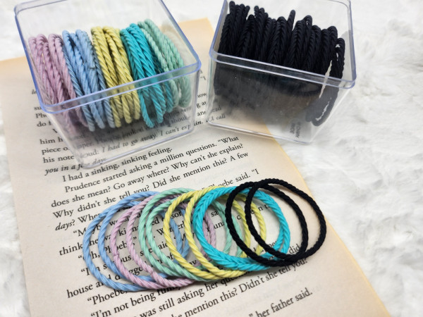 ◈ 제품명 (데일리 심플 꼬임(파스텔스프링+블랙)헤어끈 50p+50p)